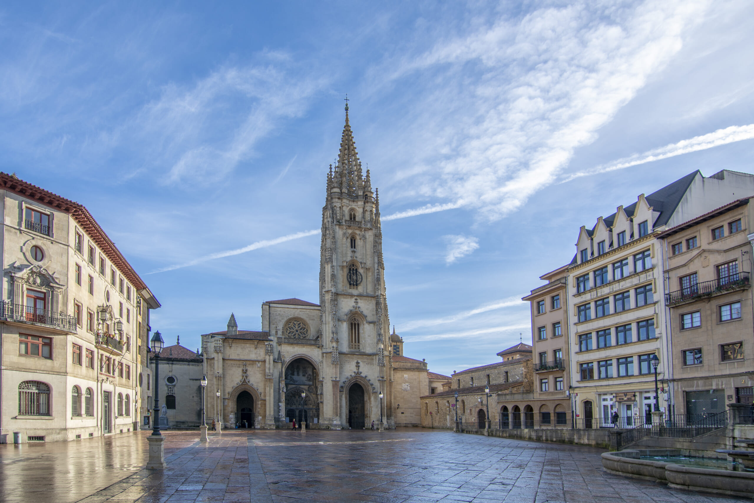 オビエドは、アストゥリアスの美しい山並みに囲まれた州都です。イベリア半島初のキリスト教王国の王都であったことを物語るように、歴史都市としての面影が感じられます。旧市街地には、アストゥリアスとオビエドの歴史が凝縮された宝物庫「カマラ・サンタ」で有名なエル・サルバドル大聖堂や、美術館、博物館、市場など、見どころが満載です。ガスコナ通りはバル通りとして知られ、地酒であるシードル (リンゴ酒) やタパスを楽しめます。