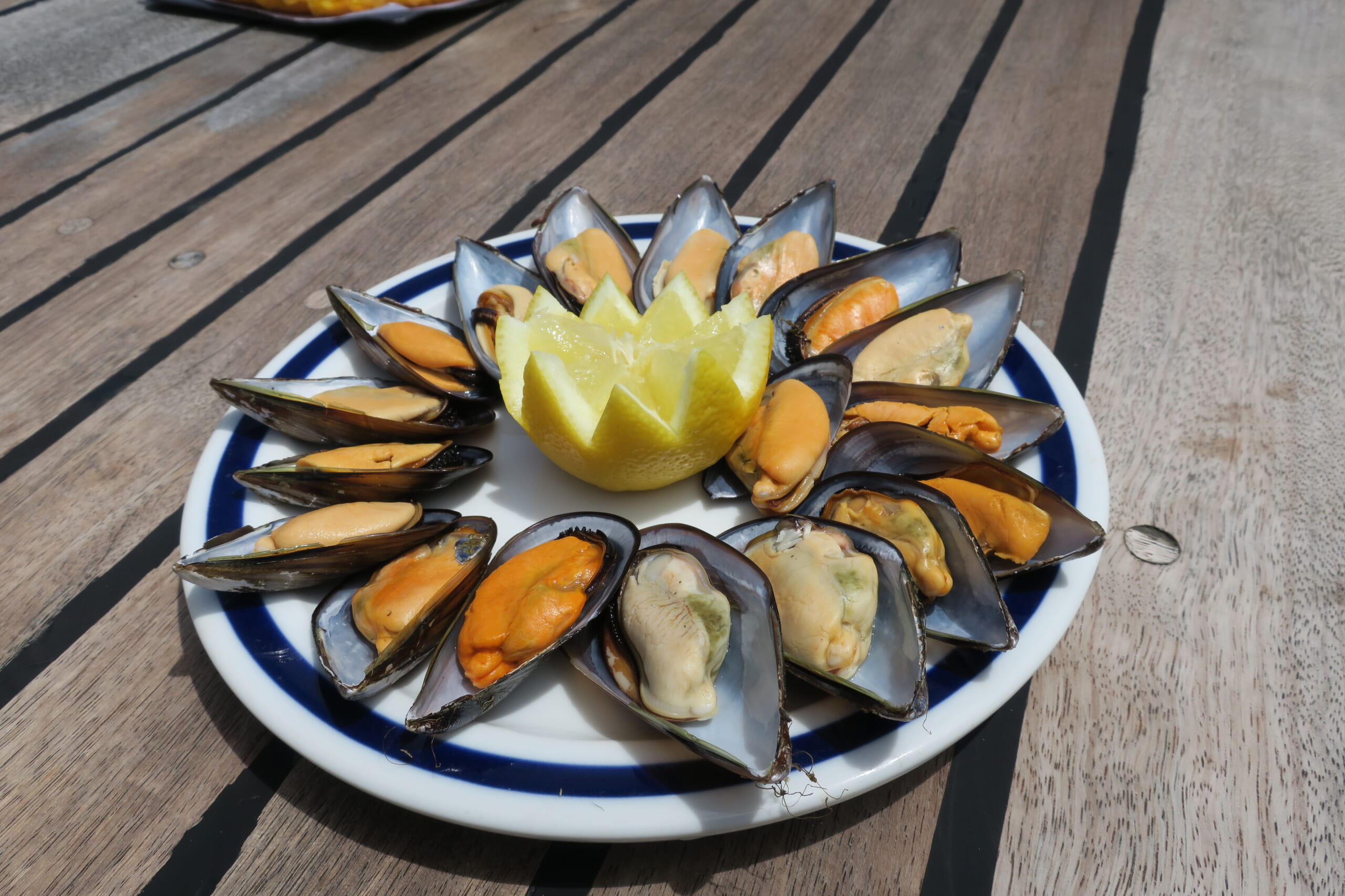2 つの海に囲まれた北スペインでは、新鮮な海の幸が獲れます。大西洋のカンタブリア海沿岸は 600 kmの長さを誇り、沖合まで大陸棚が広がっているため好漁場として有名です。メルルーサやアンコウ、イワシなどが水揚げされます。同じく、大西洋に面したガリシア州は 1200 kmに及ぶリアス式海岸が有名です。入り江 (スペイン語でリア) が複雑に入り組む海岸線には、淡水と海水が混ざり養分が豊富な漁場が生まれます。ここでは、ムール貝を中心とした養殖業が盛んです。