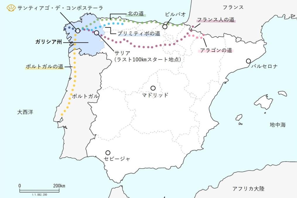 内陸部を歩く「フランス人の道」と、大西洋沿岸部を歩く「北の道」です。